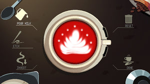 Gameplay Brew-to-Listen — Mélangez et servez une variété de boissons : chaque commande et chaque décision en matière de latte art déterminent la manière dont les clients s'ouvrent et les chemins de l'histoire qui se débloquent.